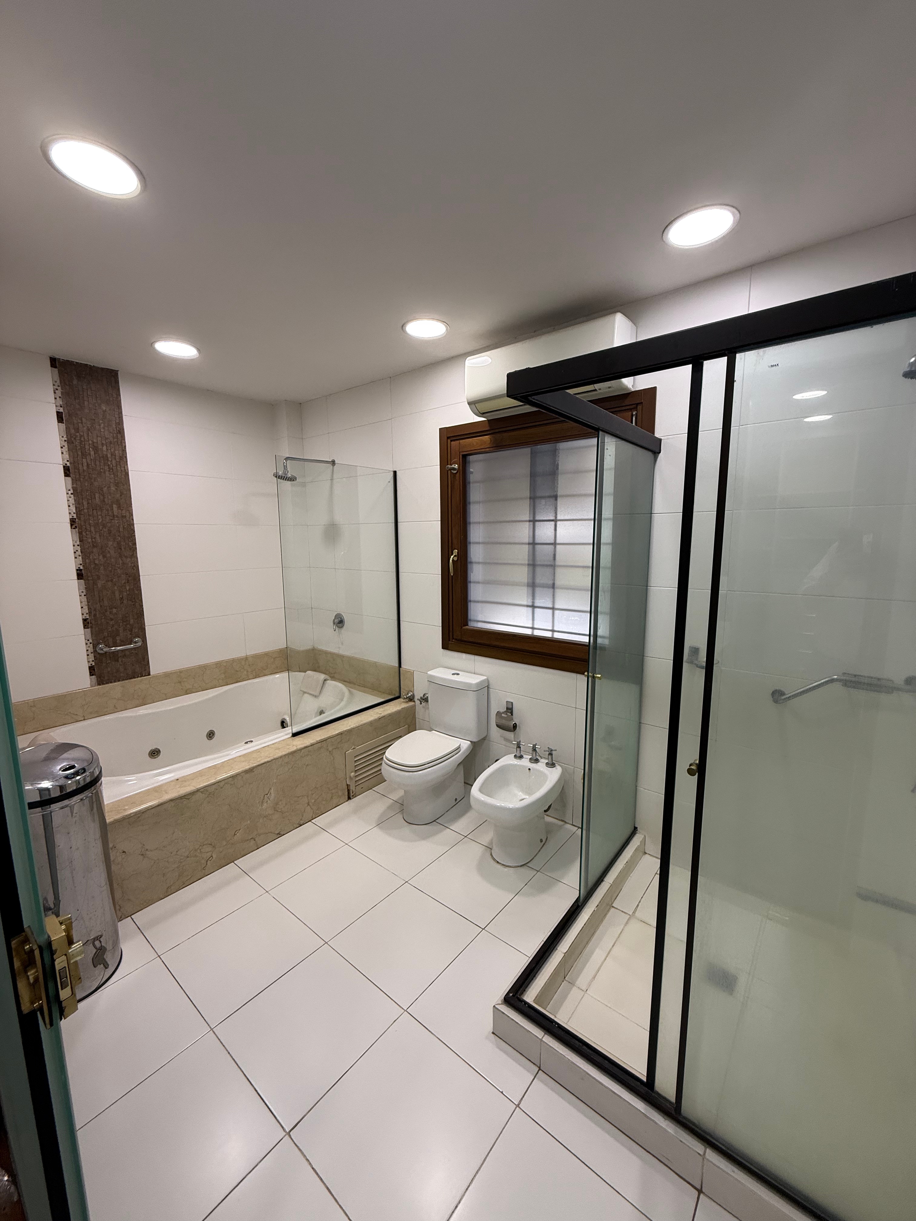 Ascensor, generador de alta capacidad, escaleras y ventanales de primera línea, vidrios templados, blindaje selectivo y terminaciones en mármol y madera natural.